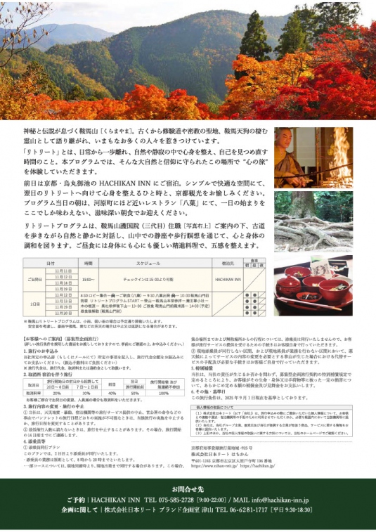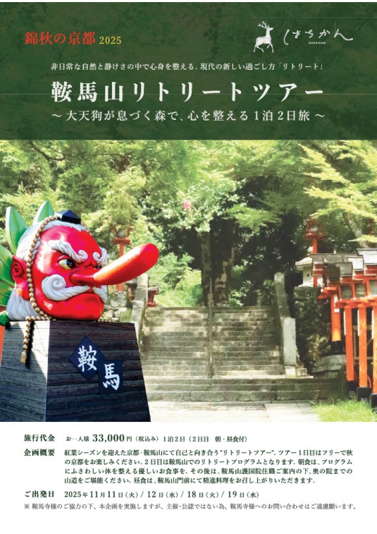 「鞍馬山リトリートツアー」チラシ~大天狗が息づく森で、心を整える1泊2日旅~